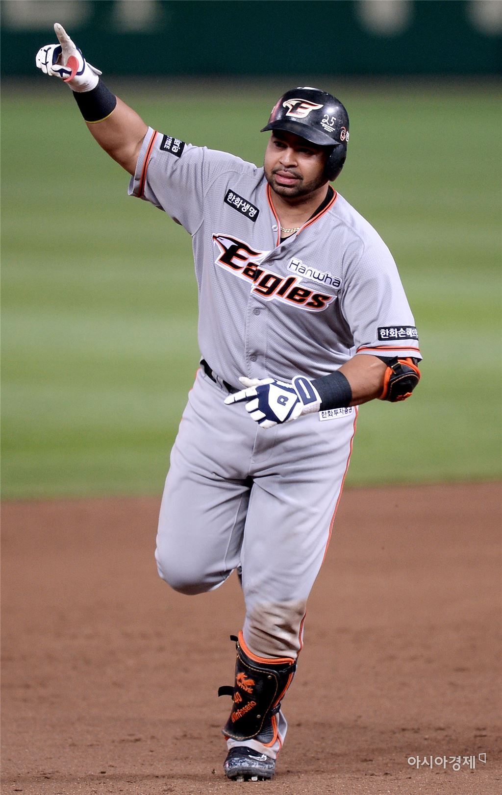 [인천=아시아경제 김현민 기자] 프로야구 한화 이글스와 SK 와이번스의 2016 KBO리그 경기가 7일 인천 SK행복드림구장에서 열렸다. 8회초 1사 1루에서 한화 로사리오가 SK채병용을 상대로 추가 투런 홈런을 치고 환호하고 있다. 김현민 기자 kimhyun81@asiae.co.kr<ⓒ세계를 보는 창 경제를 보는 눈, 아시아경제(www.asiae.co.kr) 무단전재 배포금지>