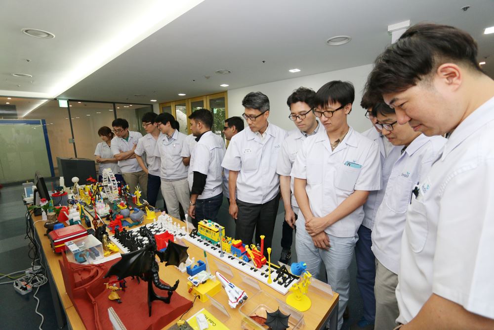 [아시아경제 김유리 기자] 신도리코가 7일 56주년 창립기념일을 맞아 서울 성수동 본사에서 창립기념식을 가졌다. 올해에는 사내에서 진행한 '3D 붐업 콘테스트' 출품작을 만날 수 있는 전시회도 함께 개최됐다.창립기념식에는 본사 임직원 모두가 참석해 지난 56년간의 기업 역사를 되짚어보며 서로의 노고를 격려하고 축하하는 시간을 가졌다. 또 장기근속사원 및 우수모범사원에 대한 시상식이 이어졌다. 기념식 이후에는 비어파티를 열고 임직원이 자유롭게 소통할 수 있는 자리도 마련했다.우석형 회장은 이날 창립기념식에서 "지난 56년 동안 신도리코가 국내 최고의 사무용 복합기 기업의 자리를 굳혔던 데는 임직원 모두의 노력이 컸다"며 "이제는 글로벌 시장에서도 신도의 이름으로 훌륭한 글로벌 비즈니스 파트너가 되기 위해 더욱 노력하자"고 당부했다.신도리코는 이날 창립기념일을 맞아 3D 붐업 콘테스트 전시회를 함께 열어 눈길을 끌었다. 3D 붐업 콘테스트는 신도리코 임직원을 대상으로 진행한 3D프린터 제작물 경연대회로 직접 3D프린터를 사용해봄으로써 3D프린터에 대한 이해도와 활용 능력을 높이기 위해 마련됐다. 신도리코가 개발한 3D프린터 3DWOX DP200으로 출력한 제작물들의 창의성을 평가한 이번 행사에는 총 100여 점의 작품이 출품되었고 본사의 별도 전시 공간을 활용해 오는 13일까지 전시할 예정이다.신도리코는 "오피스솔루션뿐만 아니라 3D프린터 분야에서의 글로벌 경쟁력 강화에 매진하고 있다"며 "지난 5월 전 임직원을 대상으로 3D프린터 활용법을 교육한 데 이어 그 연장선에서 사내의 3D프린터에 대한 관심도를 높이고자 이번 행사를 기획했으며 기대했던 것 이상으로 창의적이고 활용도 높은 작품들이 대거 출품됐다"고 말했다.김유리 기자 yr61@asiae.co.kr<ⓒ세계를 보는 창 경제를 보는 눈, 아시아경제(www.asiae.co.kr) 무단전재 배포금지>