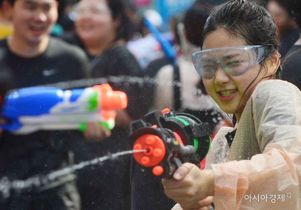 [아시아경제 문호남 인턴기자] 전국에 폭염주의보가 내린 9일 서울 서대문구 신촌 연세로에서 열린 '제4회 신촌물총축제'에서 시민들이 물총을 쏘며 더위를 식히고 있다. 문호남 인턴기자 munonam@asiae.co.kr<ⓒ세계를 보는 창 경제를 보는 눈, 아시아경제(www.asiae.co.kr) 무단전재 배포금지>