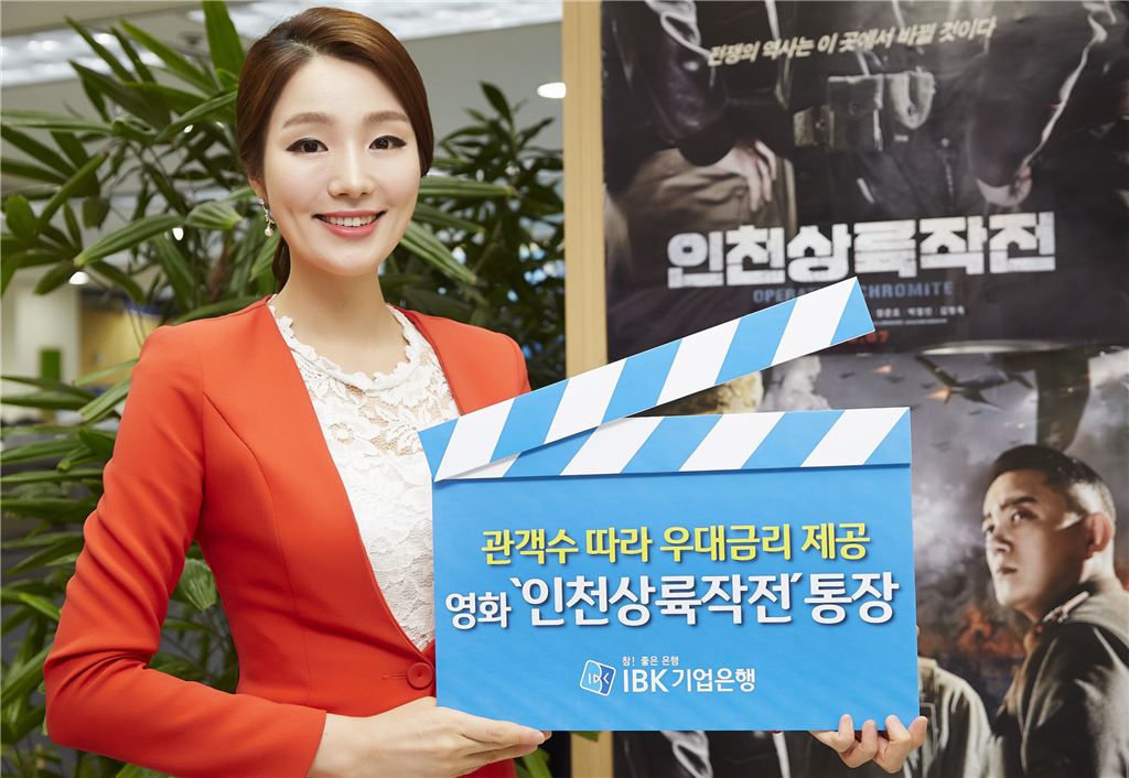 [아시아경제 손선희 기자] IBK기업은행은 영화 '인천상륙작전'의 흥행 성적에 따라 우대금리를 제공하는 '영화 인천상륙작전통장'을 1000억원 한도로 판매한다고 10일 밝혔다. 이 상품은 1년 만기 예금 상품이며, '중소기업금융채권' 또는 '실세금리정기예금'으로 가입할 수 있다. 중소기업금융채권의 기본금리는 연 1.28%이며, 영화 관람객이 300만명을 돌파하면 연 1.48%, 700만명을 돌파하면 연 1.58%의 금리를 제공한다. 실세금리정기예금의 경우 기본금리 연 1.13%로, 관객 300만명 이상시 연 1.33%, 700만명 이상시 연 1.43%의 금리가 적용된다. 최소 가입금액은 100만원이며, 최대 5000만원까지 가입할 수 있다. 또 상품가입자 중 국가보훈대상자 및 유가족을 대상으로는 선착순 100명에게 영화 인천상륙작전 관람권(1인 2매)을 증정하는 이벤트도 진행한다. 오는 27일 개봉하는 영화 인천상륙작전은 한국전쟁의 역사를 바꾼 인천상륙작전 속 군번도 계급도 없었던 사람들의 이야기를 그린 전쟁영화로 이정재, 이범수, 리암 리슨 등이 출연한다.손선희 기자 sheeson@asiae.co.kr<ⓒ세계를 보는 창 경제를 보는 눈, 아시아경제(www.asiae.co.kr) 무단전재 배포금지>