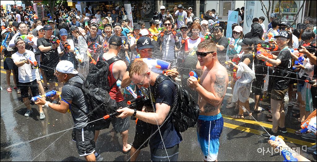 [아시아경제 윤동주 기자] 10일 서울 서대문구 신천 연세로에서 열린 '신촌 물총축제'에 참가한 참가자들이 물총 싸움을 하며 시원한 시간을 보내고 있다.윤동주 기자 doso7@asiae.co.kr<ⓒ세계를 보는 창 경제를 보는 눈, 아시아경제(www.asiae.co.kr) 무단전재 배포금지>