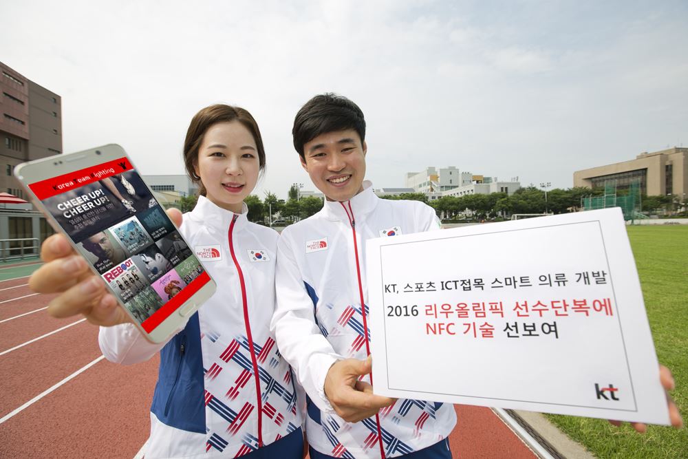 [아시아경제 박소연 기자]KT는 스포츠 의류에 근거리 무선통신을 접목한 NFC 서비스를 개발해 2016 리우 올림픽 대회에 선보인다. KT는 노스페이스와 함께 근거리 무선통신 기반의 NFC 기술을 접목한 운동복을 개발해 2016 리우 올림픽 대회에 출전하는 대한민국 국가대표 선수단 ‘팀코리아(Team Korea)’ 선수단복에 적용한다고 12일 밝혔다.KT는 음악을 들으면서 운동을 하면 심폐지구력, 근육 운동 향상에 효과적이라는 임상적 효과에 착안해 스마트폰을 NFC 태그가 부착된 운동복에 갖다 대면 다양한 음악을 선택해 들을 수 있는 기술을 개발했다. NFC는 보안칩을 활용해 인증, 결제, 정보 전송 등에 적용되는 근거리 무선 통신 기술로 모바일 교통카드, 모바일 신용카드 등에 적용되고 있다. KT와 2016 리우 올림픽 대회 국가대표 선수단복 파트너인 노스페이스는 이 기술을 2016 리우 대회 출전 팀코리아 단복에 적용해 선수들에게 최신 음악과 기능성 음악을 들을 수 있도록 했다. 선수가 NFC를 태깅하면 로그인 없이 스마트폰으로 자동 접속 승인이 이뤄지며 음악 듣기 페이지로 바로 이동해 간편하게 음악을 청취할 수 있다.KT는 향후 이 기술을 스포츠 분야에 응용해 고객들이 다양한 스마트 의류를 통해 음악을 감상할 수 있도록 하거나, 운동 상태를 모니터링해 이에 맞는 음악을 들을 수 있는 통신 서비스 등도 제공할 계획이다.이현석 KT 마케팅부문 디바이스 본부장(상무)은 “스포츠와 음악, 그리고 근거리 무선통신 기술을 접목해 퍼포먼스 향상에 도움을 줄 수 있도록 스포츠 ICT 기술을 개발했다”며 “앞으로 여러 협력사들과 협력해 스포츠 ICT 기술을 확산시킬 수 있는 다양한 제품을 개발할 것”이라 강조했다.박소연 기자 muse@asiae.co.kr<ⓒ세계를 보는 창 경제를 보는 눈, 아시아경제(www.asiae.co.kr) 무단전재 배포금지>