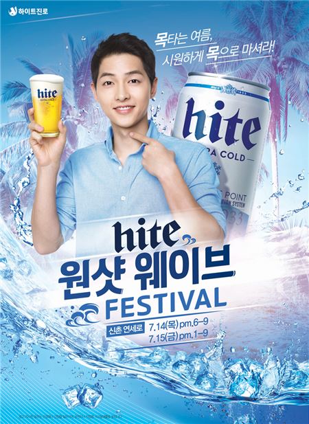 하이트맥주 홍보대사인 탤런트 송중기가 14일 오후 신촌 연세로 맥주축제에 참가한다.