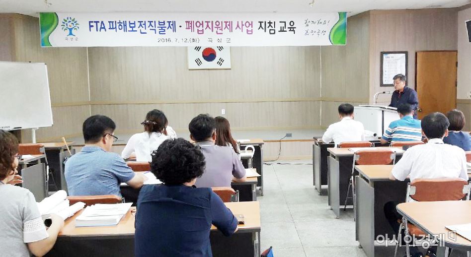 " FTA 피해보전제도 읍면 담당자 교육 실시 " [아시아경제 노해섭 기자]민선6기 곡성군(군수 유근기)은 공무원들의 업무 전문성 확보에 심혈을 기울이고 있다. 지난 12일 곡성군에서는 자유무역협정의 이행으로 가격 하락의 피해를 입은 생산자에게 피해액의 일정 부분을 지원하는 FTA 피해보전제도에 관한 읍면 담당자 교육을 실시하였다. 이번 교육은 대상품목, 신청자격, 지원단가 등 사업지침의 자세한 설명을 통해 FTA 피해보전제도 업무 담당자의 전문성을 확보하는데 중점을 두었다. 김영종 농정과장은 “주민들에게 FTA 피해보전직불 및 폐업지원 사업을 적극 홍보하여 희망농가가 신청하지 못하는 사례가 없기를 바란다”고 당부했다.노해섭 기자 nogary@<ⓒ세계를 보는 창 경제를 보는 눈, 아시아경제(www.asiae.co.kr) 무단전재 배포금지>