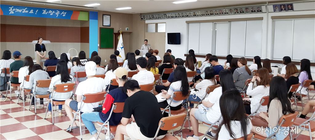 " 4주간 사회경험 기회 제공" [아시아경제 노해섭 기자]곡성군(군수 유근기)은 13일 2016년 여름철 대학생 아르바이트 25명을 선발하고 18일부터 군정업무 체험기회를 제공할 계획이다.이번 선발된 25명의 아르바이트 학생들은 7월 18일 근무요령 교육을 시작으로 군 본청과 읍·면 등에 배치되어 민원안내, 행정보조 등 군정업무를 직·간접적으로 경험하게 된다.군 관계자는 “대학생 아르바이트는 학생들에게 사회경험의 기회를 제공하고 저소득층 자녀들에게는 경제적인 도움을 주고자 매년 2회 실시하고 있으며 특히, 지역의 청년들이 이번 기회를 통해 군정에 대해 폭넓은 이해로 내 고장 곡성에 대한 애향심과 자긍심을 고취하고 지역사회 인재로 성장하기를 바란다“고 밝혔다.노해섭 기자 nogary@ <ⓒ세계를 보는 창 경제를 보는 눈, 아시아경제(www.asiae.co.kr) 무단전재 배포금지>