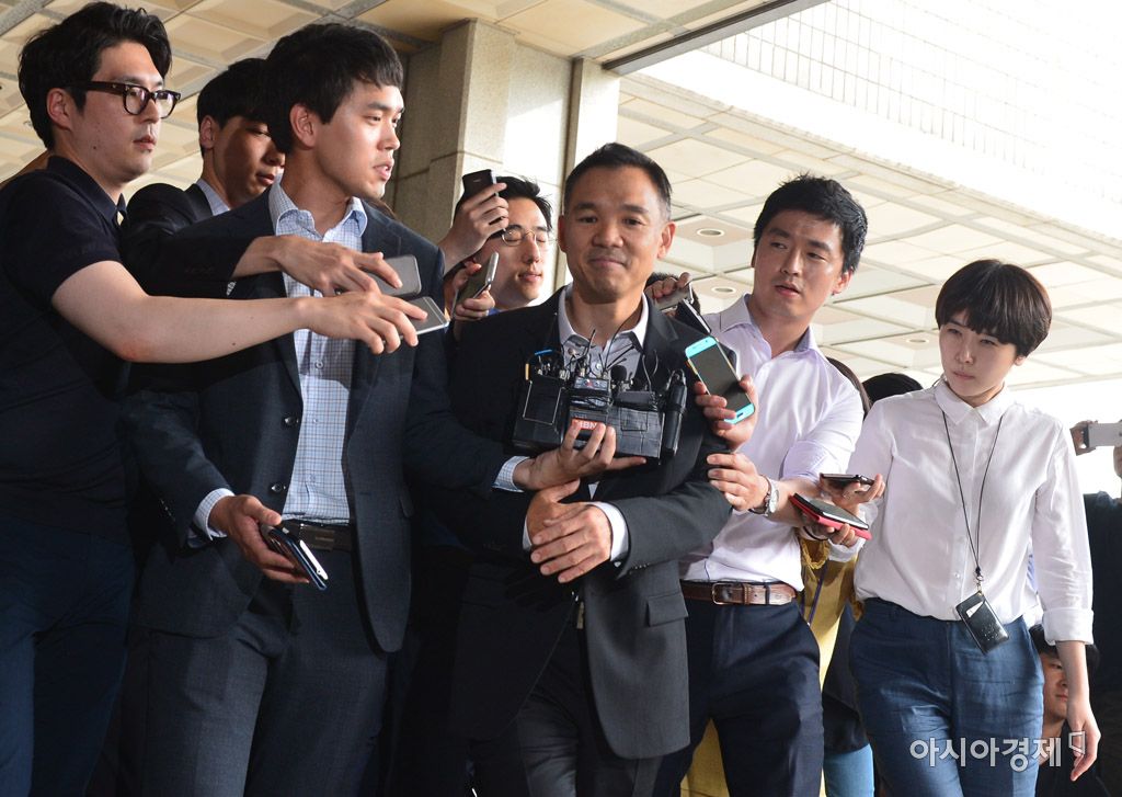 [아시아경제 문호남 인턴기자] '진경준 주식대박 의혹'을 받고 있는 김정주 넥슨 회장(오른쪽 세번째)이 13일 서울 서초구 중앙지검으로 출석하고 있다. 문호남 인턴기자 munonam@asiae.co.kr<ⓒ세계를 보는 창 경제를 보는 눈, 아시아경제(www.asiae.co.kr) 무단전재 배포금지>