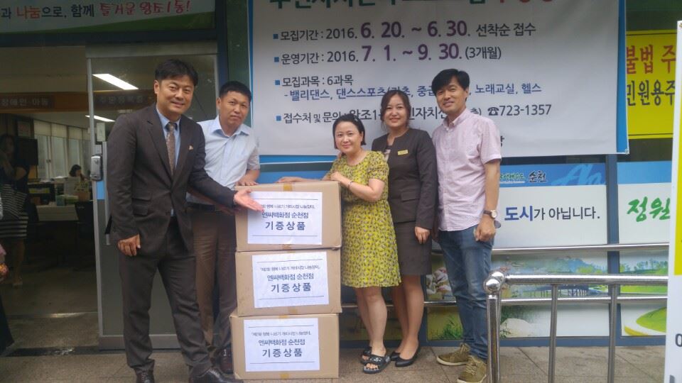 전남 순천시 왕조1동이 취약계층 복지를 위해 펼치는 개미장터에 지역 기업들의 참여가 줄을 잇고 있다. 사진은 NC백화점 순천점(점장 최재상)이 의류, 악세사리 등 생활 잡화 1200여점을 기증한 모습