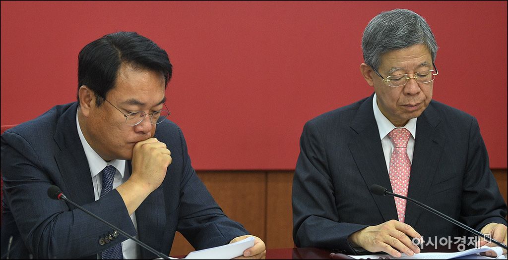 [아시아경제 윤동주 기자] 김희옥 새누리당 혁신비대위원장과 정진석 원내대표가 14일 서울 여의도 당사에서 열린 혁신비상대책위원회의에 참석, 심각한 표정으로 자료를 보고 있다.윤동주 기자 doso7@asiae.co.kr<ⓒ세계를 보는 창 경제를 보는 눈, 아시아경제(www.asiae.co.kr) 무단전재 배포금지>
