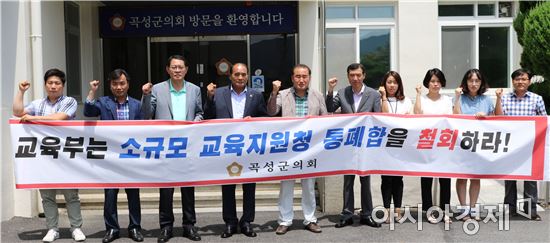 [아시아경제 노해섭 기자]지난 5월 31일 교육부에서 발표한 조직 효율화를 위한 소규모 교육지원청 통폐합 추진계획에 대해 곡성군의회(의장 이만수)는 18일 의원 간담회를 개최해 강력한 반대 입장을 표명하는 결의를 다졌다. 교육부 방침대로라면 3년 연속 인구수 3만명, 학생 수 3천명 미만인 곡성교육지원청은 통폐합 대상이 된다. 이에, 곡성군의회 의원 7명은 단순히 인구수와 학생 수만 가지고 소규모 교육지원청이 비효율적이라는 경제적 논리를 앞세워 통폐합 하겠다는 것은 농촌 교육의 현실을 외면한 것으로 교육복지가 우선 되어야 할 농촌 주민을 우롱하는 것이라는데 의견을 모았다. 이만수 의장은 “농촌지역의 교육지원청은 지역교육의 거점이며, 사회·문화 활동의 중심역할을 담당해 오고 있다”며 “이미 열악한 교육환경에 처해 있는 농촌의 특성을 고려하지 않고 교육지원청마저 없어진다면 지역교육은 더욱 위축될 것이고 농촌지역의 이탈을 가속화 시킬 것이다”고 주장했다. 간담회를 통해 곡성군의회 의원 일동은 지역교육의 구심점이자 지역 활성화의 중심축이 될 수 있도록 소규모 교육지원청 조직 효율화 추진 계획을 철회하고, 정부의 교육정책을 재검토하며, 지역 균형발전을 위한 농촌교육정책 수립을 요구하는 결의문을 채택했다.곡성군의회는 이 결의문을 청와대와 국회, 교육부 장관 등에게 18일 제출한다고 밝혔다.노해섭 기자 nogary@<ⓒ세계를 보는 창 경제를 보는 눈, 아시아경제(www.asiae.co.kr) 무단전재 배포금지>