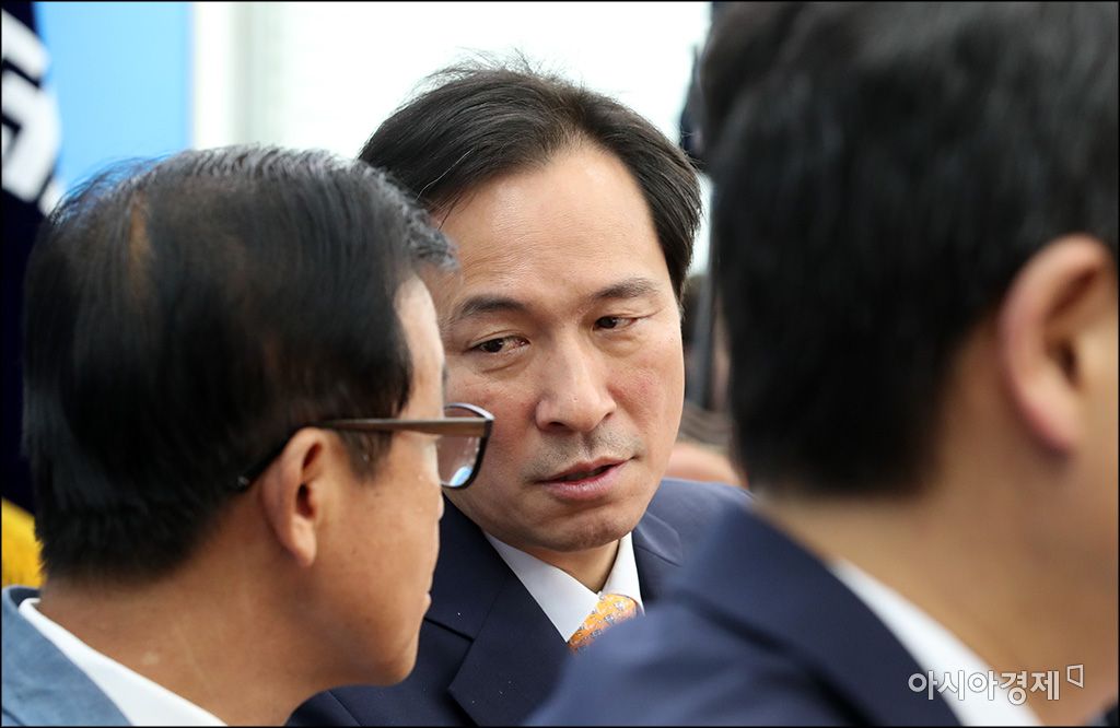[아시아경제 윤동주 기자] 우상호 더불어민주당 원내대표가 19일 서울 여의도 국회에서 열린 사드대책회의에 참석, 원혜영 의원과 의견을 나누고 있다.윤동주 기자 doso7@asiae.co.kr<ⓒ세계를 보는 창 경제를 보는 눈, 아시아경제(www.asiae.co.kr) 무단전재 배포금지>