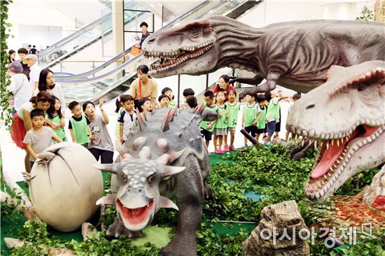 "백화점, 시티 바캉스족 마케팅 나서""피서지 인파와 휴가비용 부담 등으로 백화점에서 휴가 즐기는 인파 증가""5.5m 크기의 움직이는 대형 공룡과 공룡알, 화석, 화산 등 다양한 모형 전시""포토존 설치 등 가족과 함께 즐거운 추억 만들 수 있는 공간 조성"[아시아경제 노해섭 기자]최근 유통업계에서는 도심 속 휴가를 즐기는 ‘시티 바캉스족’을 위한 마케팅을 강화하고 있어 화제다.차량 정체와 넘쳐나는 피서지 인파, 휴가비용 부담 등의 이유로 백화점에서 휴가를 즐기려는 사람이 늘고 있는 것이다.아울러 방학시즌이 시작되면서 어린이를 동반한 가족단위 고객들이 많아진 것도 시티 바캉스족이 증가한 원인으로 분석된다.이처럼 시티 바캉스 고객이 몰리자 광주신세계는 오는 8월 중순까지를 휴가 성수기로 예상하고 이색 다양한 마케팅 이벤트를 기획해 고객맞이에 나선다.1층 컬쳐스퀘어에서는 어린이 상상력 자극 테마 공간, '공룡 대탐험전'이 8월 21일까지 운영될 예정으로 어린이뿐만 아니라 가족단위 고객 모두가 즐길 수 있는 실물 전시 공간이 마련된다.과거에는 세일 등과 같은 할인판매 행사나 판매 촉진을 위한 다양한 사은혜택으로 고객의 관심을 유도했으나 최근에는 고객이 직접 참여하고 흥미를 끌 수 있는 이른바 고 집객 효과의 ‘체험형 마케팅'에 집중한다며 광주신세계가 행사 기획 배경을 설명했다.이번 공룡 대탐험전 행사는 작년 여름 앞서 진행되었던 바 있다. 많은 인기에 따른 올해 재 전시를 진행함에 따라 한층 업그레이드 된 11종의 초대형 공룡 모형들을 만나 볼 수 있다.특히 이번 공룡 대탐험전에서는 7월 22일부터 7월 24일까지 3일간(1일 2회) 직접 사람이 작동하여 움직이는 공룡을 직접 볼 수 있는 기회를 마련하였다.또한 5.5m 크기의 움직이는 초대형 티라노사우르스 렉스부터 트리케라톱스, 안킬로사우르스 등 대형 모형 공룡들의 생동감 있는 모습과 더불어 3D 프린터로 제작된 소형 공룡들을 볼 수 있으며,이 밖에도 부화하는 공룡의 모습과 화산, 화석 등 다양한 전시 행사를 마련해, 가족과 함께 즐거운 추억을 만들 수 있는 공간도 마련되어 있다.임훈 광주신세계 대표이사는“작년에 이어 올해도 백화점을 찾는 시티 바캉스족들이 많아질 것으로 예상하고 있다"며 "도심 속에서 휴가를 만끽하고 어린이뿐만 아니라 가족단위 고객 모두 즐길 수 있는 공룡 대탐험전과 같은 이색적인 마케팅 활동으로 다양한 문화가치를 창조하도록 노력하겠다”고 말했다.노해섭 기자 nogary@<ⓒ세계를 보는 창 경제를 보는 눈, 아시아경제(www.asiae.co.kr) 무단전재 배포금지>