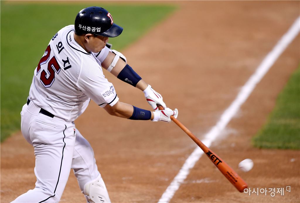 [아시아경제 김현민 기자]프로야구 삼성 라이온즈와 두산 베어스의 2016 KBO리그 경기가 19일 잠실구장에서 열렸다. 4회말 1사 만루에서 두산 양의지가 선취 1타점 중견수 희생플라이를 치고 있다. 김현민 기자 kimhyun81@asiae.co.kr<ⓒ세계를 보는 창 경제를 보는 눈, 아시아경제(www.asiae.co.kr) 무단전재 배포금지>