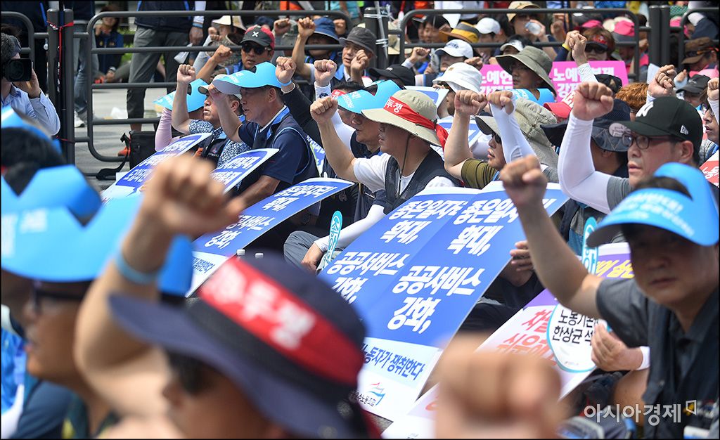 [아시아경제 윤동주 기자] 민주노총 소속 조합원들이 20일 서울 여의도 산업은행 앞에서 성과연봉제, 조선업계 해고 등 현정부의 노동정책을 비난하는 '1차 총파업-총력투쟁 대회'를 갖고 있다.윤동주 기자 doso7@asiae.co.kr<ⓒ세계를 보는 창 경제를 보는 눈, 아시아경제(www.asiae.co.kr) 무단전재 배포금지>