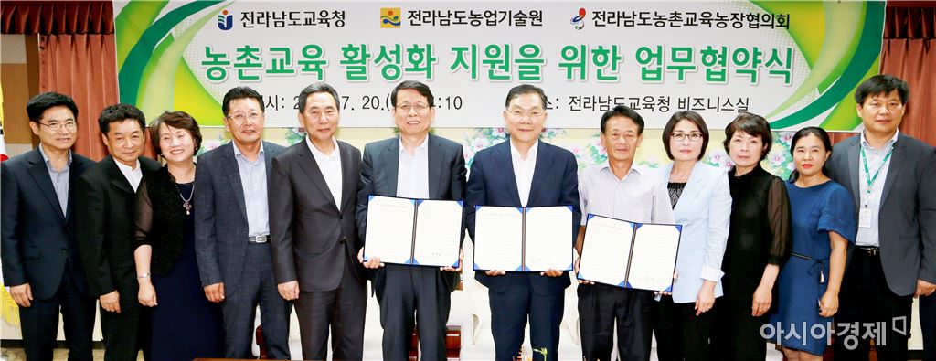 전남도교육청(교육감 장만채)은 20일 본청 비즈니스실에서 농업기술원, 농촌교육농장협의회와 농촌교육 활성화 지원을 위한 업무협약을 체결했다. <br />