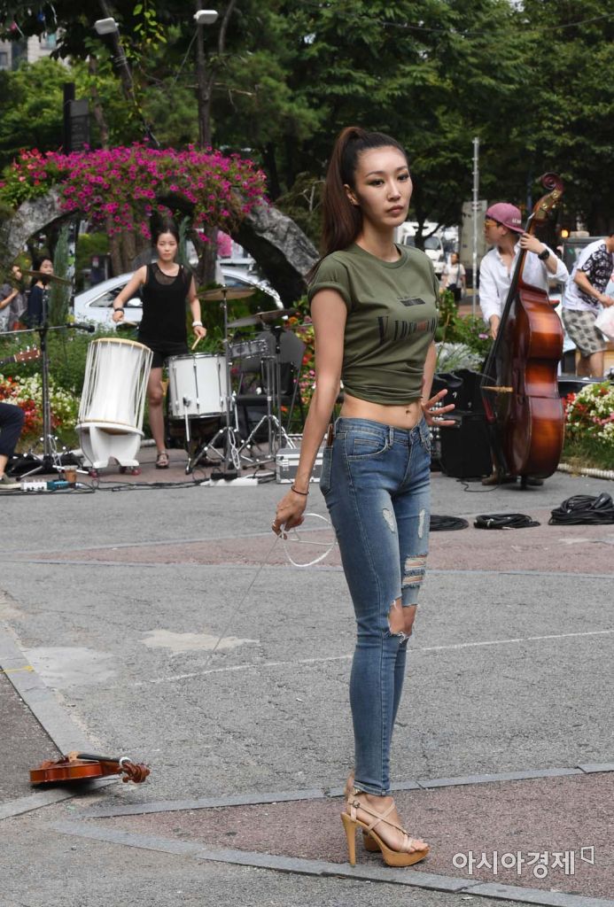 [아시아경제 백소아 기자] 20일 서울 마포구 홍대 걷고 싶은 거리 야외무대에서 열린 백남준 추모 10주기 기념 리스펙트 음악공연 & 패션쇼 'Video Art Look'에서 백남준 리스펙트 의미를 부여한 아트티셔츠를 입은 모델이 바이올린을 끌면서 걷고 있다. 이 퍼포먼스는 백남준이 '걸음을 위한 선'이란 제목으로 자주 선보인 행동이었다.백소아 기자 sharp2046@asiae.co.kr<ⓒ세계를 보는 창 경제를 보는 눈, 아시아경제(www.asiae.co.kr) 무단전재 배포금지>