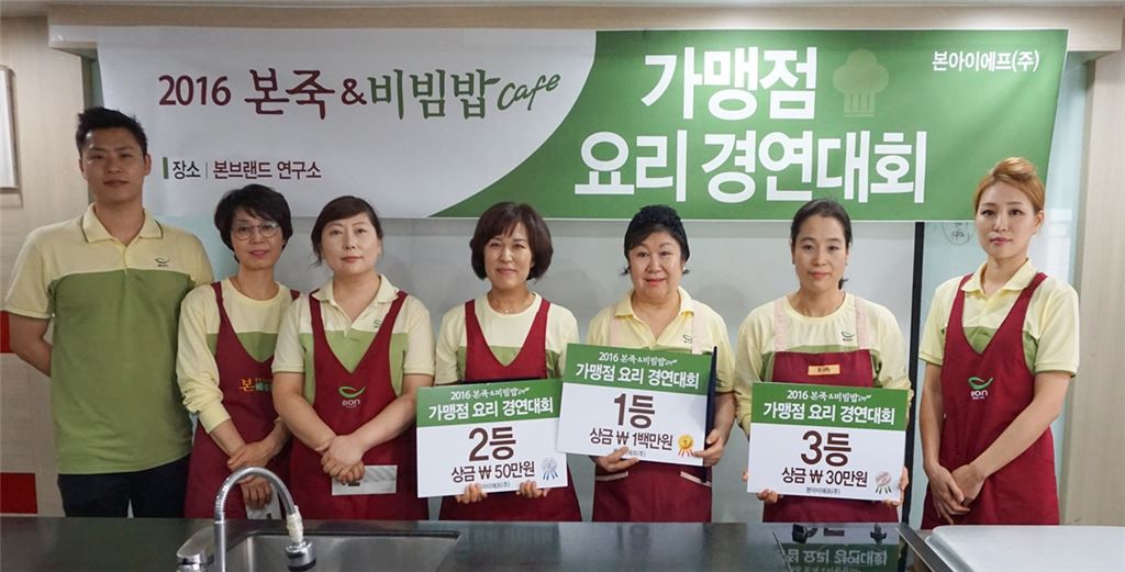 [아시아경제 임혜선 기자]본아이에프에서 운영하는 캐주얼 한식 카페 본죽&비빔밥카페가 20일 서울 종로구에 위치한 본브랜드연구소에서 전국 가맹점과 함께 '제1회 신메뉴 아이디어 공모전' 시상식을 개최했다. 올해 처음으로 진행된 공모전은 본죽&비빔밥카페가 생생한 현장의 목소리를 적극 반영하고, 본사와 가맹점주가 함께 소통하는 상생의 장을 마련하기 위해 기획된 대표적인 상생 프로그램 중 하나다. 본죽&비빔밥카페는 지난 3일까지 전국 150여개 가맹점을 대상으로 프리미엄 죽과 프리미엄 비빔밥에 대한 신메뉴 아이디어를 접수 받았다. 메뉴화 가능성·창의성·기획성을 기준으로 1차 서류 심사가 진행됐으며, 이 가운데 총 8개 팀을 선발해 지난 20일 2차 요리 경연 대회를 개최했다. 이 날 1등을 수상한 낙성대점은 면역력에 좋은 된장을 비롯해 시래기나물과 바지락 등으로 건강한 비빔밥 메뉴를 내놨다. 1등 수상팀에게는 상장과 상금 100만원이 수여됐으며, 2등(1팀)과 3등(1팀)에게도 각각 상장과 상금 50만원·30만원이 제공됐다.임혜선 기자 lhsro@asiae.co.kr<ⓒ세계를 보는 창 경제를 보는 눈, 아시아경제(www.asiae.co.kr) 무단전재 배포금지>