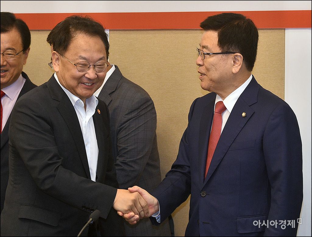 [아시아경제 윤동주 기자] 유일호 경제부총리 겸 기획재정부 장관이 21일 국회에서 열린 세법개정 관련 당정협의에 참석, 김광림 새누리당 정책위의장과 인사를 나누고 있다.윤동주 기자 doso7@asiae.co.kr<ⓒ세계를 보는 창 경제를 보는 눈, 아시아경제(www.asiae.co.kr) 무단전재 배포금지>
