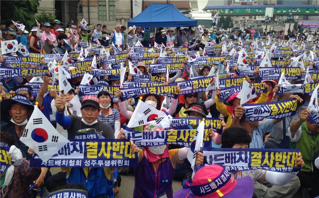 21일 서울역 광장에서 성주군민 2000여명이 사드배치 반대 집회를 하고 있다.