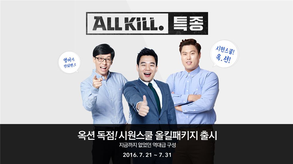 [아시아경제 조호윤 기자]옥션이 시원스쿨과 손잡고 영어강의 패키지를 단독으로 마련했다. 옥션은 오는 31일까지 ‘시원스쿨 올킬패키지’를 단독 출시한다고 22일 밝혔다. 이번 패키지는 시원스쿨에서 제공하는 왕기초부터 심화 영어회화를 위한 온라인 교육프로그램을 옥션만의 특가로 선보이는 기획상품이다.시원스쿨 올킬패키지(34만9000원)는 ‘기초영어 전 강의 1년 6개월 무제한 수강권’, 리스닝·스피킹 전문 프로그램 ‘맥스 1년 수강권’, ‘그래머인 유즈 강의 1년 무제한 수강권’, 시원스쿨 프리미엄 강의인 ‘블랙라벨 강의 1년 수강권’으로 구성됐다. 구매자는 ‘기초영어말하기훈련’, ‘왕초보영단어’, ‘실전영어말하기훈련’, ‘그래머 인 유즈 베이직’ 등 총 19종의 교재와 ‘플래너’, ‘단어장’, ‘캘린더’ 등 총 6종의 사은품을 받을 수 있다. 보다 자세한 상품 내용은 옥션 사이트에서 ‘올킬특종’ 혹은 ‘시원스쿨올킬패키지’, ‘올킬패키지’를 검색하면 확인 가능하다.이외에도 ‘시원스쿨 올킬 노트북 패키지’는 ‘Windows 10이 탑재된 2in1 노트북’과 ‘기초 영어 2년 수강권’, ‘맥스 1년 수강권’, ‘그래머인 유즈 강의 1년 무제한 수강권’, ‘블랙라벨 강의 1년 수강권’ 및 교재 19종, 사은품 6종으로 구성됐다. 가격은 59만9000원이다. ‘시원스쿨 올킬 파워업 노트북 패키지’는 ‘2in1 노트북’, ‘기초 영어 2년 수강권’, ‘맥스 1년 수강권’과 교재 18종으로 구성됐으며, 가격은 54만9000원이다. 특히 이번 올킬패키지 단독 출시를 기념해 ‘1년 수강권 연장 이벤트’도 마련했다. 이번 패키지 구매 후 소셜네트워크서비스(SNS) 인스타그램에 ‘#시원스쿨올킬패키지’로 태그해 인증샷을 올리면 총 50명을 추첨해 1년 수강 연장 혜택을 제공한다.김선희 옥션 도서팀 팀장은 “소비자들에게 큰 인기를 끌고 있는 시원스쿨의 온라인 영어 교육 프로그램을 옥션 단독이자 파격적인 구성으로 선보이게 됐다”며, “앞으로도 더 알차고 특별한 구성을 선보일 수 있도록 할 것”이라고 말했다. 조호윤 기자 hodoo@asiae.co.kr<ⓒ세계를 보는 창 경제를 보는 눈, 아시아경제(www.asiae.co.kr) 무단전재 배포금지>
