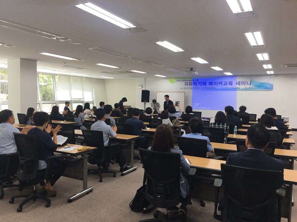 지난 6월 ETRI가 인청시청, 인천시교육청 소속 자유학기제 담당교사 40여명을 대상으로 개최한 메이커 교육 세미나 모습