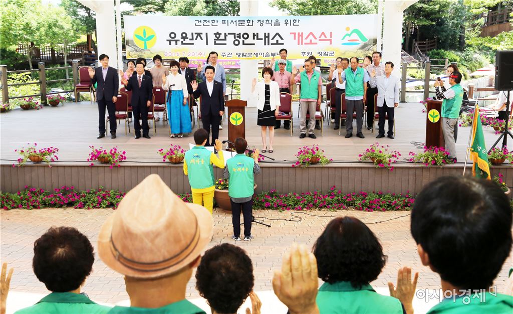 "건전한 피서지문화 정착 앞장 서"[아시아경제 노해섭 기자]영암군새마을부녀회(회장 김미순)는 지난 22일 월출산 기찬랜드에 ‘여름환경안내소’를 개소하고 건전한 피서문화 정착을 위한 활동에 나섰다. 이번 여름환경안내소는 오전 10부터 오후 6시까지 각 읍면새마을지도자들이 1일 5명씩 모두 150여명이 윤번제로 근무하고, 무료 급수봉사, 피서지 주변 정화활동 및 계도활동, 관광지 홍보 등의 다양한 봉사활동을 하게 되며, 다음달 13일까지 25일간 운영한다.