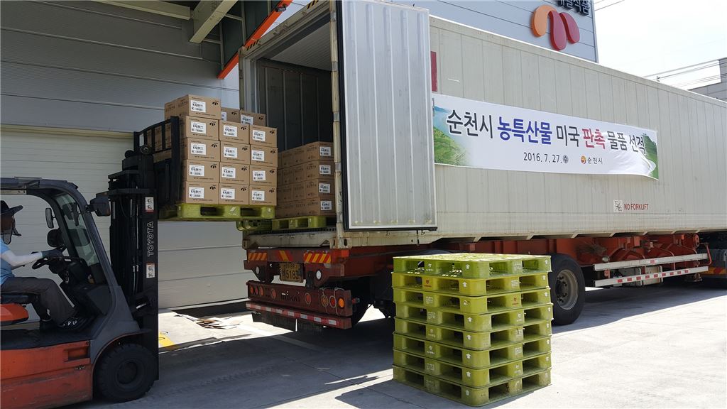 전남 순천시가 내달 미국 시카고 중부시장, LA 등 남부캘리포니아 시온마켓 6곳에서 현지 판촉활동을 위해 27일 최종 물량을 선적했다.