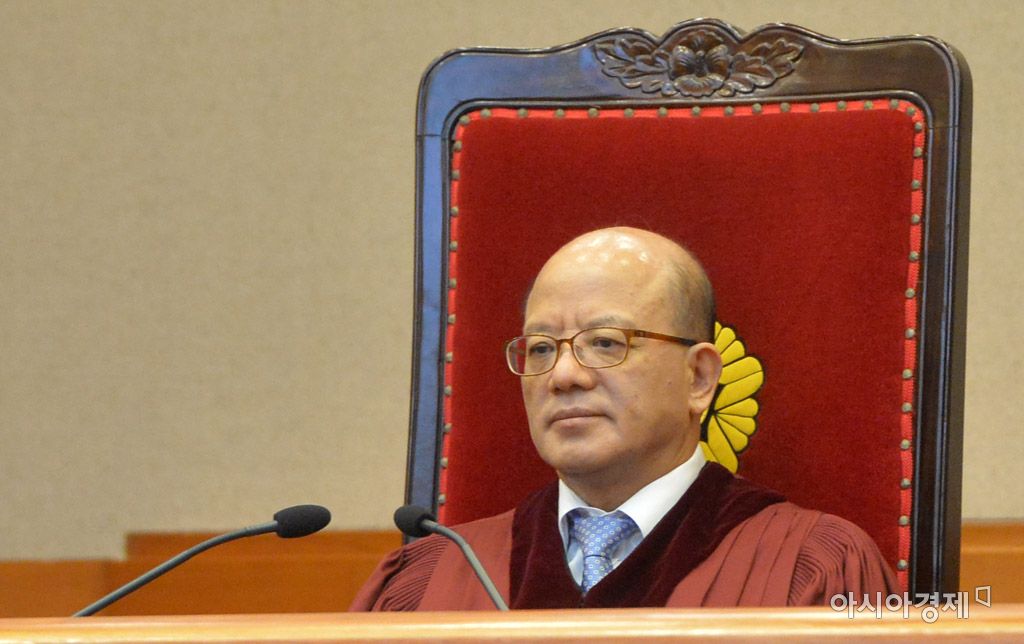 [아시아경제 문호남 인턴기자] 박한철 헌법재판소 소장이 28일 서울 종로구 헌법재판소에서 '김영란법'으로 불리는 '부정청탁 및 금품 등 수수의 금지에 관한 법률(부정청탁금지법)'의 위헌 여부 판결을 위해 대심판정에 착석하고 있다.문호남 인턴기자 munonam@asiae.co.kr<ⓒ세계를 보는 창 경제를 보는 눈, 아시아경제(www.asiae.co.kr) 무단전재 배포금지>