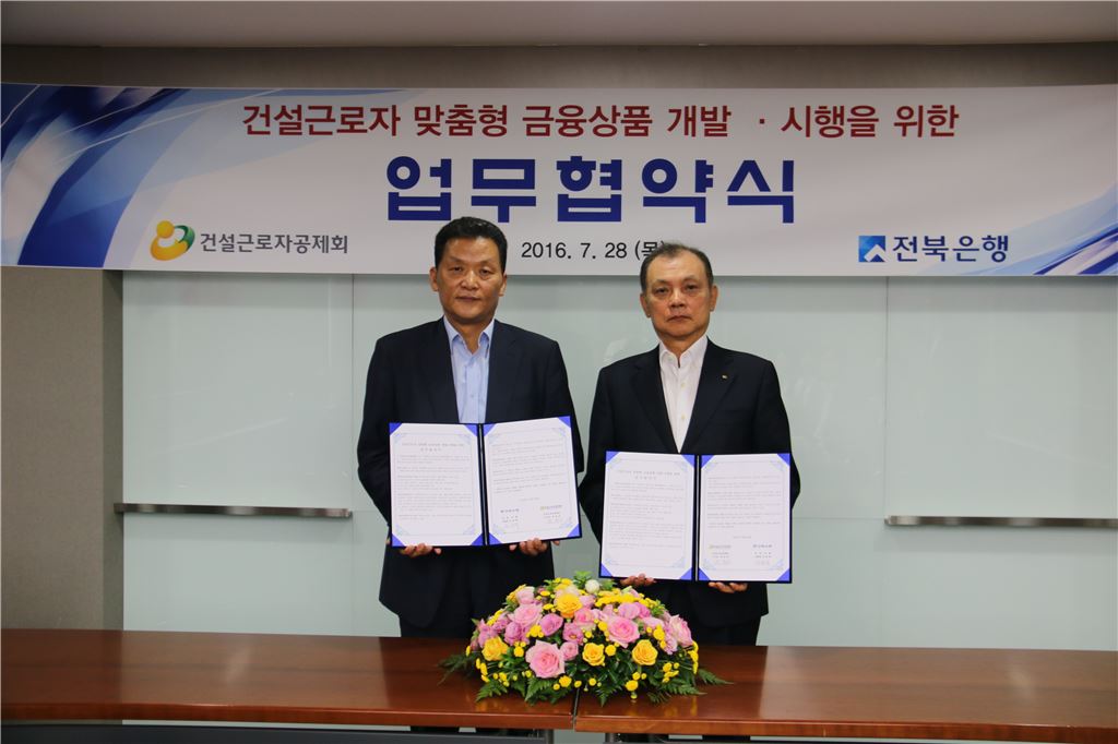 [아시아경제 정현진 기자] JB금융그룹 전북은행이 건설근로자 전용 대출상품인 '체인지업론'을 출시한다.전북은행은 28일 여의도 JB빌딩 11층에서 건설근로자공제회와 건설근로자 맞춤형 금융상품 개발을 위한 업무협약을 체결했다고 밝혔다. 이번 협약으로 건설근로자 맞춤형 금융상품인 '체인지업 론'을 다음달 1일 출시하기로 했다. 이 상품은 건설근로자공제회에 퇴직공제금을 적립하고 있는 근로자를 대상으로 하는 전용상품이다. 전북은행 관계자는 "은행권 대출 시장에서 소외된 건설 일용직 근로자들의 경우 소득이 일정치 않아 그동안 제2금융권 등에서 고금리 신용대출을 받아왔다"며 "6~10% 초반의 상대적으로 저렴한 금리를 이용하면서 제1금융권 대출로 갈아탈 수 있다는 점에 의미가 있다"고 말했다. 정현진 기자 jhj48@asiae.co.kr<ⓒ세계를 보는 창 경제를 보는 눈, 아시아경제(www.asiae.co.kr) 무단전재 배포금지>