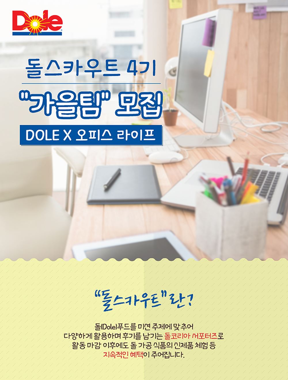 [아시아경제 이주현 기자]돌이 공식 서포터즈 ‘돌스카우트’ 4기 가을 팀 참가자 5명을 오는 8월7일까지 돌 푸드 블로그를 통해 모집한다고 29일 밝혔다. ‘돌 스카우트’는 돌에서 매년 봄, 여름, 가을마다 참가자를 모집해 운영해 온 서포터즈다. 참가자는 약 3개월 동안 돌의 신제품을 체험해 볼 수 있는 기회를 제공받고, 주어진 미션 주제에 맞는 여러 활동들을 진행하게 된다. 이번 4기 가을 팀 모집은 개인 블로그와 타 소셜네트워크서비스(SNS) 채널을 운영하는 직장인이면 누구나 지원이 가능하다. 참가자에게는 소정의 활동비와 함께, 활동 이후 우수 활동자로 선별된 이들에게는 돌의 특별한 기프트 세트가 제공될 예정이다. ‘돌 스카우트’ 4기 가을 팀 참가 희망자는 돌 푸드 블로그의 스카우트 모집 내용을 포스팅 하고, 돌과 이웃을 맺은 뒤 참가자 신청서를 다운 받아 작성, 담당자 이메일로 제출하면 된다. 합격자는 내부 심사를 거쳐 8월10일에 공식 블로그를 통해 발표 될 예정이다. 김학선 돌코리아 가공식품사업부 상무는 “돌은 매년 돌 스카우트를 모집해왔으며, 지난 기수의 주부 소비자에 이어 이번에는 직장인 소비자를 모집하여 신제품을 체험할 기회를 제공하고 있다”며 “앞으로도 돌 스카우트를 통해 고객들과 함께 하는 활동을 계속 진행해나갈 것”이라고 말했다.이주현 기자 jhjh13@asiae.co.kr<ⓒ세계를 보는 창 경제를 보는 눈, 아시아경제(www.asiae.co.kr) 무단전재 배포금지>