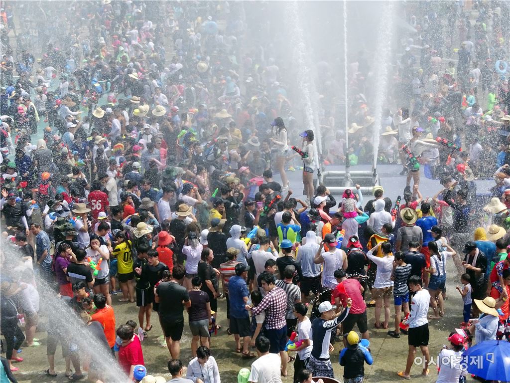 [아시아경제 노해섭 기자]연일 찜통더위가 기승을 부리는 가운데 31일 정남진 장흥 물축제장을 찾은 관광객들이 지상최대 물싸움 현장에 참여해 시원하게 쏟아지는 물줄기를 맞으며 더위를 식히고 있다. 지난 7월 29일 막을 올린 장흥 물축제는 오는 8월 4일까지 탐진강과 우드랜드 일원에서 ‘물과 숲-休'를 주제로 열린다.노해섭 기자 nogary@<ⓒ세계를 보는 창 경제를 보는 눈, 아시아경제(www.asiae.co.kr) 무단전재 배포금지>