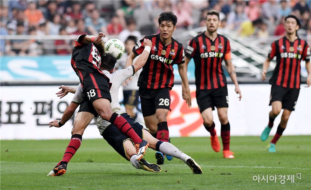 [아시아경제 김현민 기자]프로축구 FC서울과 포항 스틸러스의 2016 K리그 클래식 경기가 31일 서울월드컵경기장에서 열렸다. 포항 롤리냐와 서울 이규로가 치열한 공다툼을 하고 있다. 김현민 기자 kimhyun81@asiae.co.kr<ⓒ세계를 보는 창 경제를 보는 눈, 아시아경제(www.asiae.co.kr) 무단전재 배포금지>