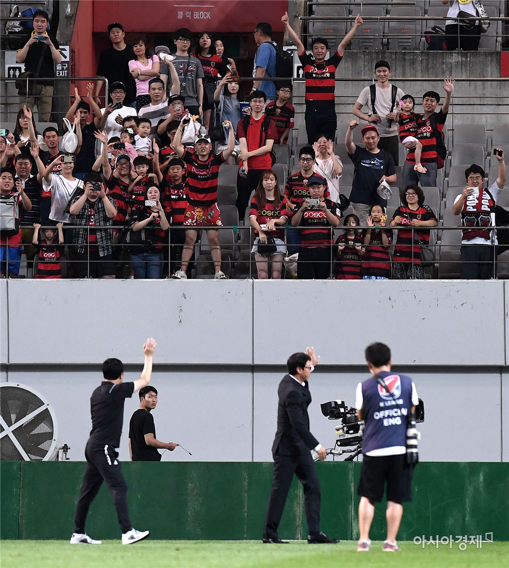 [포토]포항 서포터즈에게 인사하는 황선홍 감독