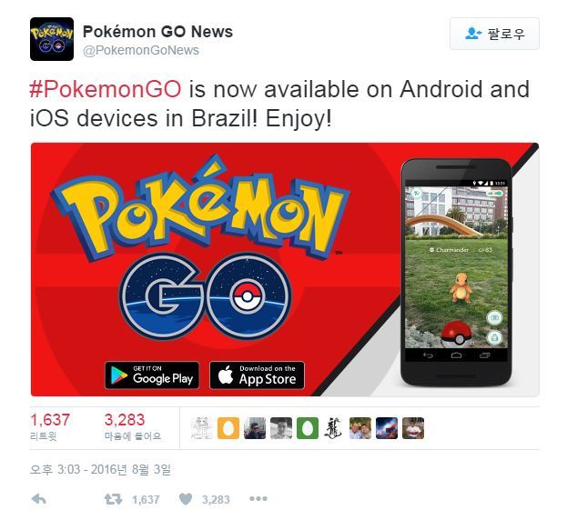 '포켓몬 GO' 브라질 출시를 밝히는 나이언틱 랩스 트위터
