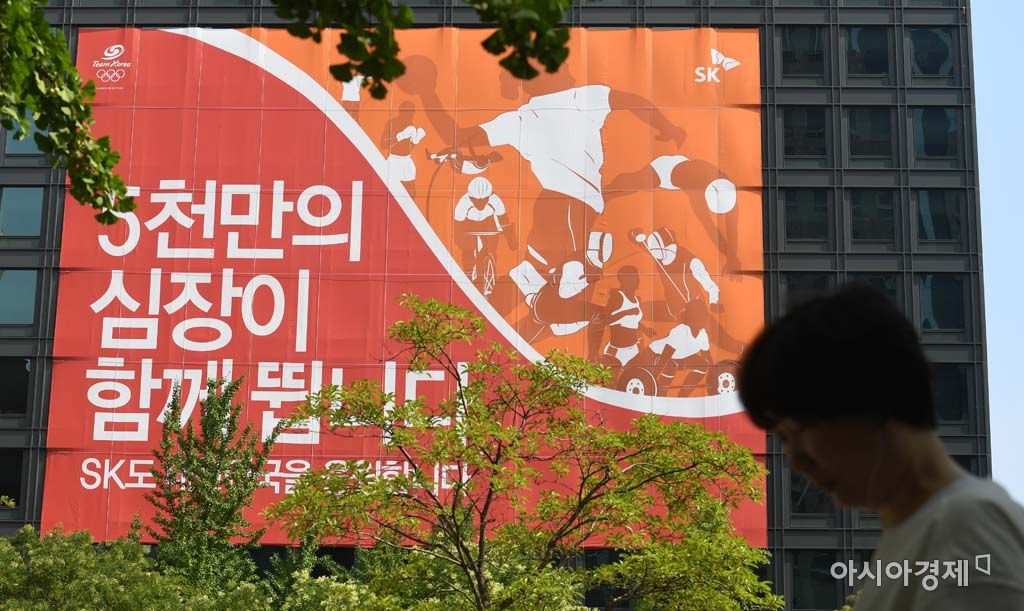 [아시아경제 백소아 기자] 리우올림픽 개막을 이틀 앞둔 4일 서울 종로구 SK그룹사옥에 대한민국 선수단의 선전을 기원하는 대형 현수막이 걸려있다.백소아 기자 sharp2046@asiae.co.kr<ⓒ세계를 보는 창 경제를 보는 눈, 아시아경제(www.asiae.co.kr) 무단전재 배포금지>