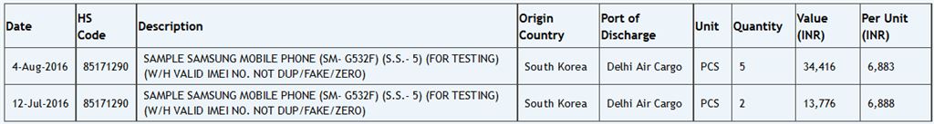[아시아경제 이민우 기자] 5인치 중저가 스마트폰 '갤럭시 그랜드'의 후속작이 출시될 전망이다.6일(현지시간) 정보기술(IT) 전문매체 폰아레나는 인도의 물류회사 자우바(Zauba)의 수입 운송장에서 스마트폰 갤럭시 그랜드의 후속작의 흔적이 발견됐다고 전했다. 자우바 웹사이트 상의 운송장에 나타난 스마트폰의 모델 번호는 SM-G532로, 삼성의 5인치 중저가 스마트폰 '갤럭시 그랜드 프라임'의 모델 번호 SM-G531와 마지막 숫자 하나만 달라 사실상 후속작일 것으로 예상된다.자우바(Zauba) 온라인 운송장에 나타난 갤럭시 그랜드 후속작(추정)의 운송정보