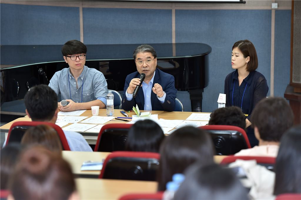 이재정 경기도교육감이 경기예술고등학교를 찾아 음악교사들과 간담회를 갖고 경기교육 현안에 대해 이야기를 하고 있다.