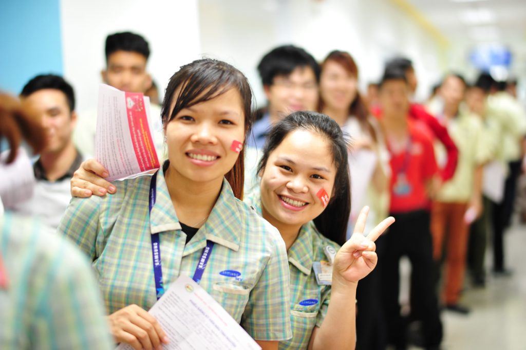삼성전자 베트남공장 직원들이 헌혈하는 모습[자료사진=삼성전자]