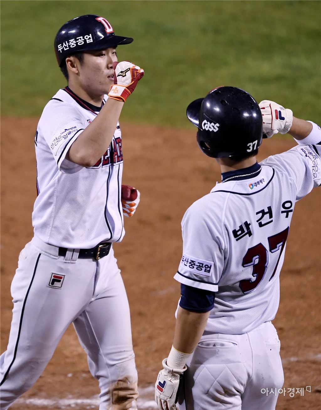 [아시아경제 김현민 기자]프로야구 KIA 타이거즈와 두산 베어스의 2016 KBO리그 경기가 9일 잠실구장에서 열렸다. 7회말 2사 1,2루에서 두산 허경민이 KIA 김명찬을 상대로 추가 3점 홈런을 치고 기뻐하고 있다. 김현민 기자 kimhyun81@asiae.co.kr<ⓒ세계를 보는 창 경제를 보는 눈, 아시아경제(www.asiae.co.kr) 무단전재 배포금지>