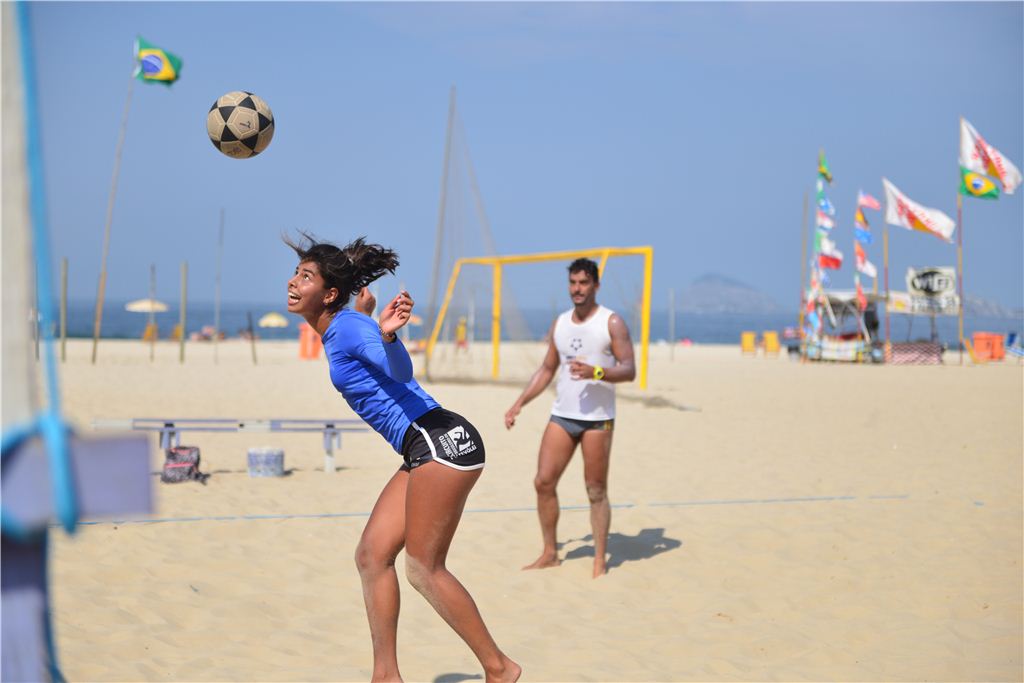 코파카바나 해변에서 족구를 즐기는 브라질 여성