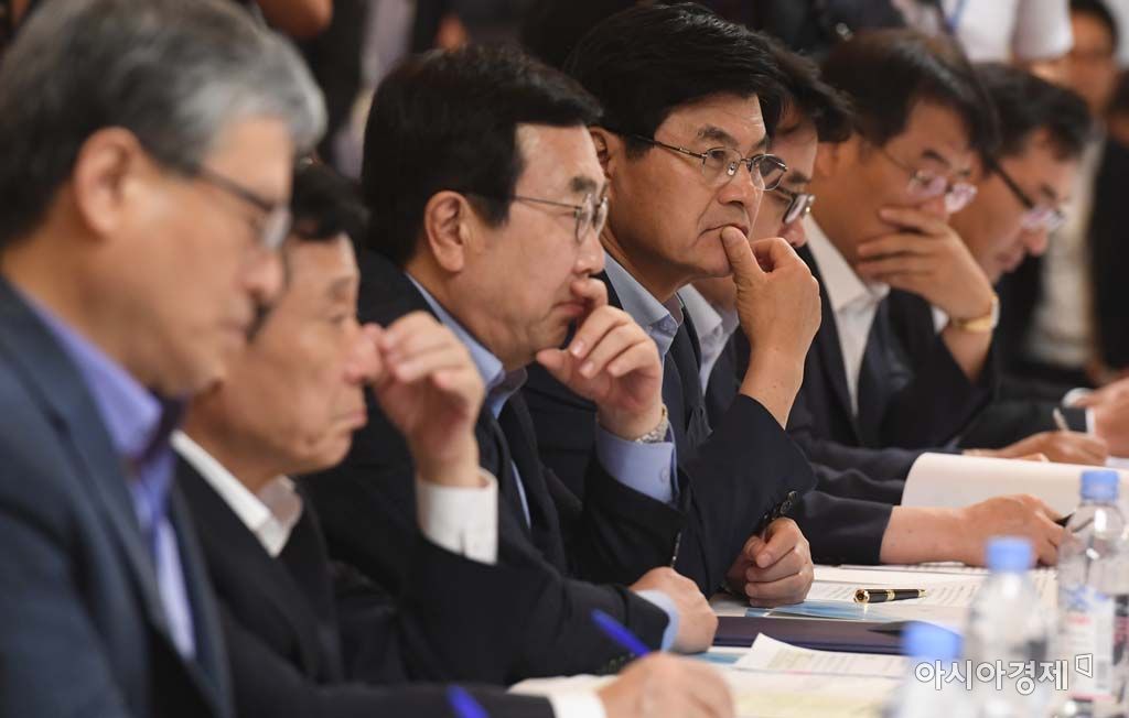 [아시아경제 백소아 기자] 10일 서울 영등포구 국회의사당에서 열린 규제프리존 특별법 제정을 위한 14개 시·도지사 간담회에서 시·도지사들이 심각한 표정으로 유일호 경제부총리의 발언을 경청하고 있다. 이날 유 부총리는 "정부에서는 규제프리존 특별법을 하반기 최우선 과제로 추진 중이다"라고 밝혔다.백소아 기자 sharp2046@asiae.co.kr<ⓒ세계를 보는 창 경제를 보는 눈, 아시아경제(www.asiae.co.kr) 무단전재 배포금지>