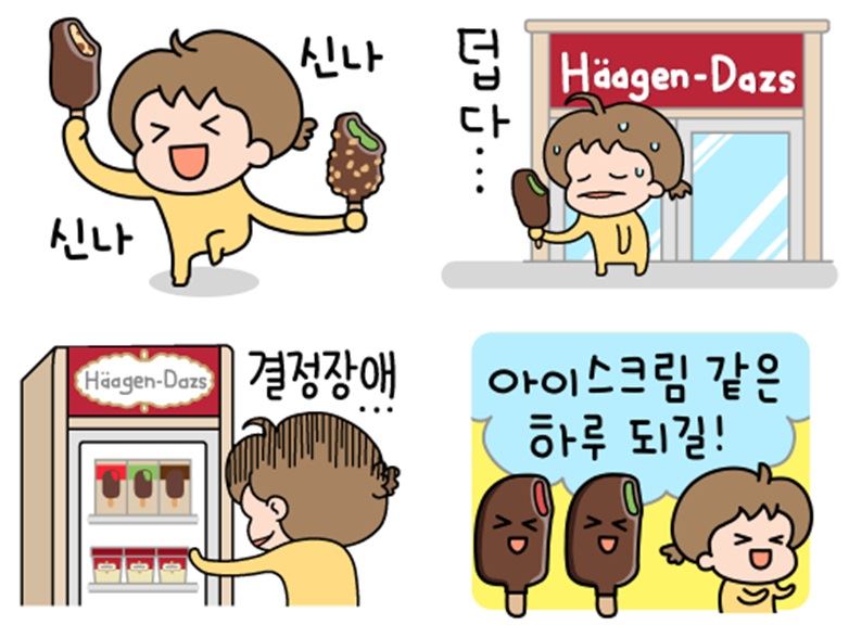 [아시아경제 이주현 기자]하겐다즈가 스틱바 6종 출시 기념해 인기 웹툰 작가 서나래와 컬래버레이션을 통해 하겐다즈 카카오톡 이모티콘을 선보인다고 11일 밝혔다. 서나래 작가가 그린 ‘낢이 사는 이야기’는 2007년부터 네이버 웹툰 연재를 시작해 총 500화가 넘는 에피소드를 그려냈다. 완결까지 평균 9.95라는 높은 별점을 받으며 대중들의 사랑을 받은 웹툰으로 꼽힌다.이번 출시 예정인 하겐다즈 카카오톡 이모티콘은 서나래 작가의 웹툰과 같이 일상에서 만날 수 있는 소소한 상황을 공감가는 그림과 절묘한 멘트로 만들었다. 특히 하겐다즈 아이스크림을 먹으면 느낄 수 있는 달달한 순간이나 다양한 하겐다즈의 플레이버를 두고 하나를 골라야 하는 선택의 순간을 귀엽고 친근한 ‘낢’ 캐릭터로 재치있게 표현해 일상에서 자주 사용할 수 있는 이모티콘으로 완성했다.하겐다즈 마케팅 담당자는 “소비자들과 감성적인 소통을 하고 싶어 서나래 작가와 컬레버레이션했다”며 “하겐다즈 제품을 그림에 자연스럽게 녹여낼뿐 아니라 일상에서 자주 사용할 수 있는 말들을 이모티콘으로 제작하여 하겐다즈를 더욱 친근하게 접할 수 있다”고 전했다.하겐다즈 이모티콘은 하겐다즈 공식 페이스북을 통해 이벤트에 참여하면 무료 다운로드가 가능하다. 오는 16일에 출시예정이며 다운로드일로부터 한 달간 무료로 사용할 수 있다.이주현 기자 jhjh13@asiae.co.kr<ⓒ세계를 보는 창 경제를 보는 눈, 아시아경제(www.asiae.co.kr) 무단전재 배포금지>