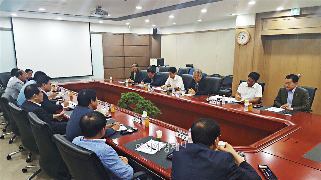 전남 고흥군민대표단이 ‘팔영대교 명칭안 부결’에 항의하기 위해 국토지리정보원을 방문해 군민들의 뜻을 전하고 있다.