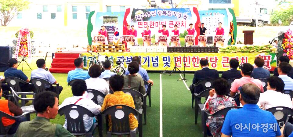 [아시아경제 노해섭 기자]곡성군 겸면청년회(회장 심현섭) 지난 15일 겸면 목화마을 한마음센터에서 면민과 향우 등이 참석한 가운데 ‘제71주년 광복절 기념 체육대회 및 면민 한마당 큰잔치’를 개최했다. 면민 화합과 친목을 도모하고 한마음 한뜻으로 살기 좋은 지역 만들기를 다짐하기 위한 이날 행사는 윷놀이·줄다리기·축구 등 다양한 프로그램으로 진행됐다. 유근기 군수는 "8·15 광복절의 의미를 되새기기 위해 겸면청년회가 주최·주관하는 이번 행사는 그 의미가 남다르다”며 “앞으로 우리 선조들이 국가를 위해 일궈놓은 위대한 일들이 후손들에게 소중하게 계승될 수 있도록 군 차원에서 적극 노력하겠다”고 강조했다. 한편 지역사회 선행을 이어가고 있는 겸면청년회는 심현섭 회장과 20명의 회원을 중심으로 ‘국경일 태극기 달기 운동’, ‘복지회관 목욕탕 운영관리’, ‘하절기 방역소독’, ‘주요 도로변 풀베기’, ‘시가지 자연정화활동’등 다양한 봉사활동을 펼치고 있다.노해섭 기자 nogary@<ⓒ세계를 보는 창 경제를 보는 눈, 아시아경제(www.asiae.co.kr) 무단전재 배포금지>