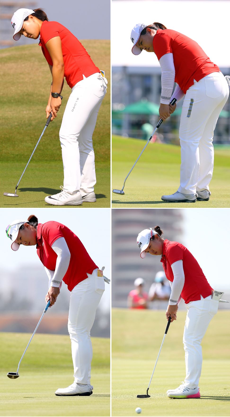 [리우데자네이루=연합뉴스] 17일(현지시간) 브라질 리우데자네이루의 올림픽 골프 코스(파71·6천245야드)에서 시작된 여자 골프 1라운드에서 전인지(왼쪽사진부터), 박인비, 양희영, 김세영이 퍼팅을 하고 있다. <저작권자 ⓒ ㈜연합뉴스. 무단 전재 재배포 금지.>