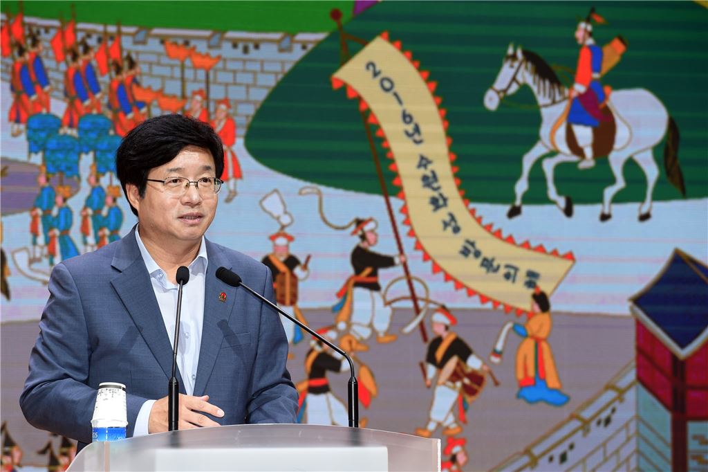염태영 수원시장이 수원화성문화제 범시민 참여추진위원회 출범식에 참석해 인사말을 하고 있다.
