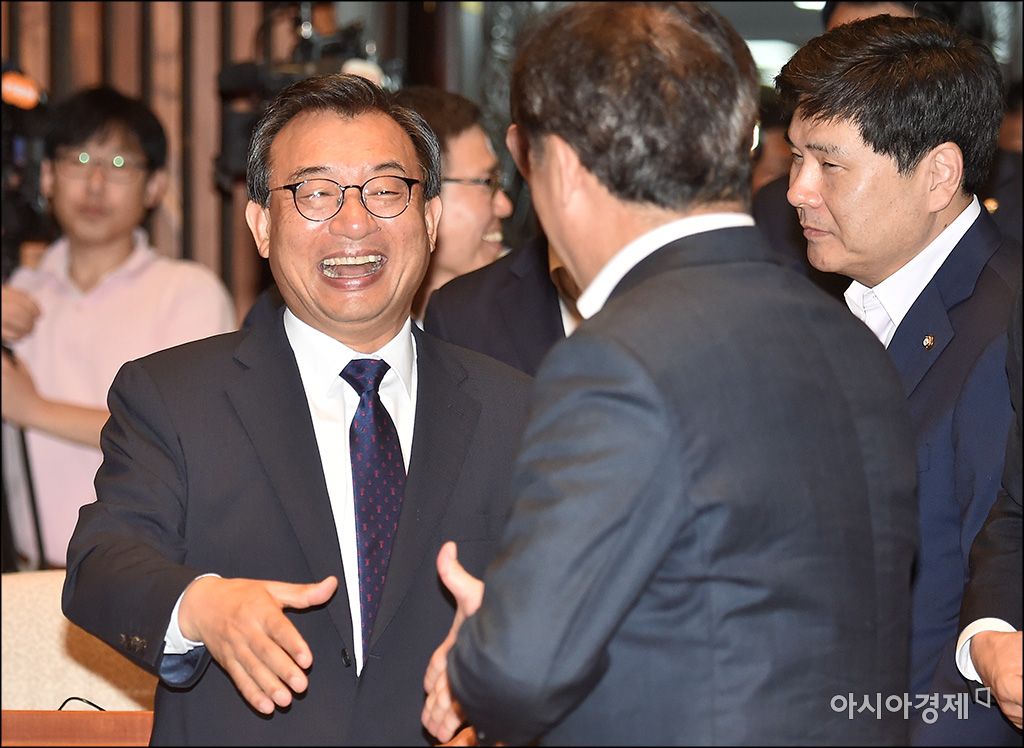 [아시아경제 윤동주 기자] 이정현 새누리당 대표가 22일 국회에서 열린 긴급 의원총회에 참석, 활짝 웃으며 동료 의원들과 인사를 나누고 있다.윤동주 기자 doso7@asiae.co.kr<ⓒ세계를 보는 창 경제를 보는 눈, 아시아경제(www.asiae.co.kr) 무단전재 배포금지>
