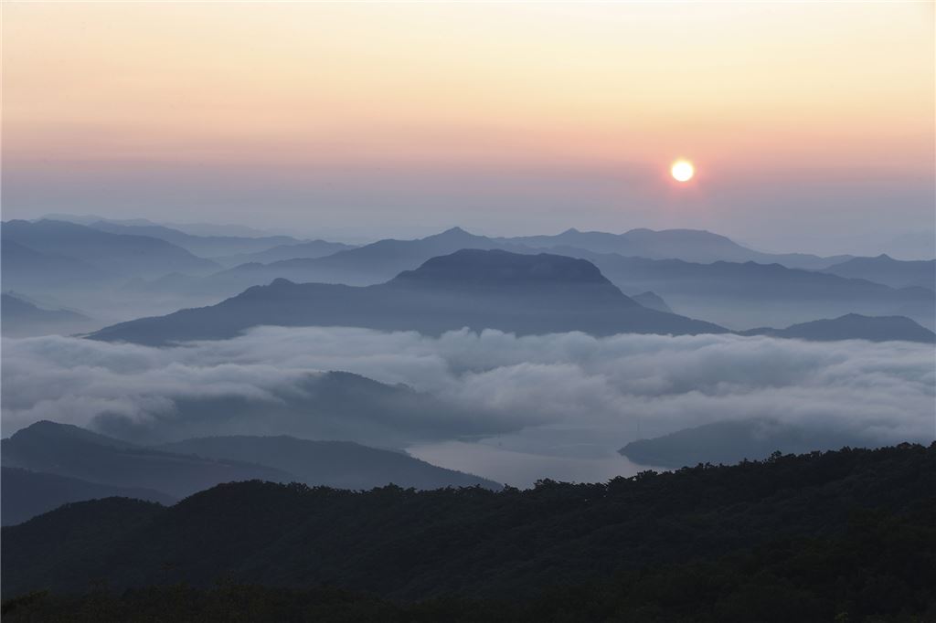 지난 19일 전남 화순군 이서면 별산 정상에서 바라본 화순적벽의 아침.<br />