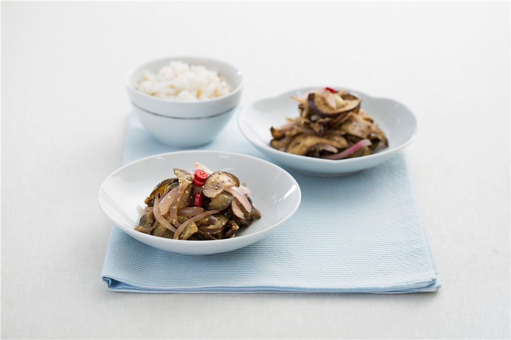 재료(2인분)가지 1개, 보라색 양파 1/2개, 마늘 2쪽, 식용유 3, 국간장 1, 소금ㆍ후춧가루ㆍ깨소금 약간씩만들기▶ 요리 시간 15분1. 가지는 꼭지를 잘라내고 길이로 반을 갈라 어슷하게 일정한 두께로 썬다.<br />