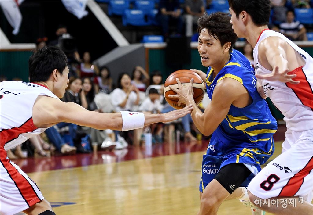 [아시아경제 김현민 기자]2016 KCC 프로-아마 농구최강전 부산 kt와 서울 삼성의 경기가 25일 잠실학생체육관에서 열렸다. 삼성 김태술이 상대 수비를 뚫고 공격하고 있다. 김현민 기자 kimhyun81@asiae.co.kr<ⓒ세계를 보는 창 경제를 보는 눈, 아시아경제(www.asiae.co.kr) 무단전재 배포금지>