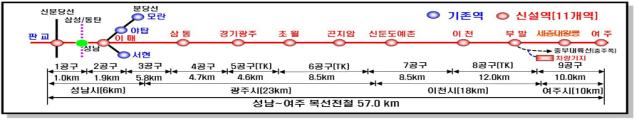[아시아경제 주상돈 기자] 국토교통부는 경기 성남·판교를 출발해 광주와 이천, 여주를 오가는 경강선(성남~여주) 복선전철 건설사업을 마무리해 다음달 24일부터 본격 영업운행에 들어간다고 28일 밝혔다. 개통식은 9월23일 오후 여주역에서 열린다.국토부는 본 노선의 개통으로 수도권 동남부지역의 급속한 성장에 따라 제기되고 있는 서울 및 주변 도시간 수송수요 증가에 대비한 철도망의 확충으로 광역 교통문제를 해소할 수 있을 것으로 기대하고 있다. 한국철도시설공단이 시행한 본 사업은 성남~여주간 57㎞ 구간을 복선전철로 건설하는 사업이다. 2002년 12월 기본계획을 마련한 이후 총사업비 1조9485억원을 투입해 2007년 11월 노반공사를 착공한 이래 약 8년10개월간에 걸쳐 공사를 시행했다.본 노선에는 성남시 2개와 광주시 4개, 이천시 3개, 여주시 2개 등 총 11개의 역이 새롭게 만들어 졌다.현재 버스로 두시간 정도 소요되던 판교~여주간 이동 시간이 개통되는 철도 이용시 약 48분으로 대폭 단축된다.국토교통부와 한국철도공사는 추석을 맞이해 예상되는 교통 혼잡을 완화하고 지역주민의 전철교통편의를 위해 본격 영업운행에 앞서 추석기간 동안 무료로 임시열차를 운행한다.이번 임시열차는 9월13일부터 18일까지 6일간 판교 및 여주역에서 출발해 매일 오전 9시부터 오후 6시까지 1시간 간격으로 운행하며 전 역에서 이용이 가능하다.강호인 국토부 장관은 "경강선이 개통되면 수도권 및 광주와 이천, 여주 등 수도권 동남부 지역간 접근성이 대폭 개선돼 지역경제 발전에도 큰 도움이 될 것"이라며 "특히 향후 연계노선 개통 시 지역경제 활성화에도 크게 기여 할 것으로 기대된다"고 말했다.주상돈 기자 don@asiae.co.kr<ⓒ세계를 보는 창 경제를 보는 눈, 아시아경제(www.asiae.co.kr) 무단전재 배포금지>